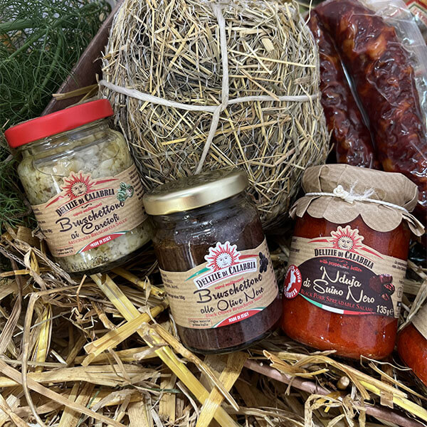 Ingredienti nduja di suino nero 90% (grasso e carne di suino nero di Calabria, peperoncino dolce e piccante calabrese 26%, sale), olio di oliva |