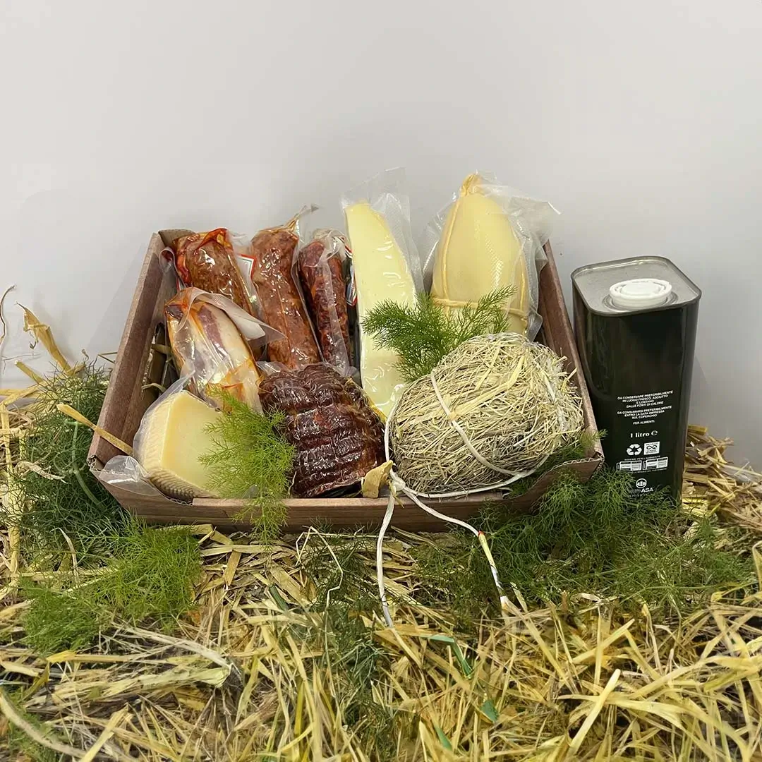 “Silan Box” è una selezione esclusiva di prelibatezze italiane perfette per gli amanti dei sapori tradizionali. Include 1 litro di olio extra vergine di oliva, essenziale per la cucina mediterranea. La carne è protagonista con la soppressata piccante (300 gr), la salsiccia stagionata dolce (250 gr), il capicollo (500 gr), il guanciale (350 gr) e la nduja spalmabile (300 gr), che portano il caratteristico sapore calabrese. La varietà di formaggi è ineguagliabile: provola (½ kg), caciocavallo (½ kg), formaggio fieno (750 gr) e formaggio semi duro misto (400 gr) completano questa box, offrendo una gamma di sapori e consistenze che soddisfano ogni palato.